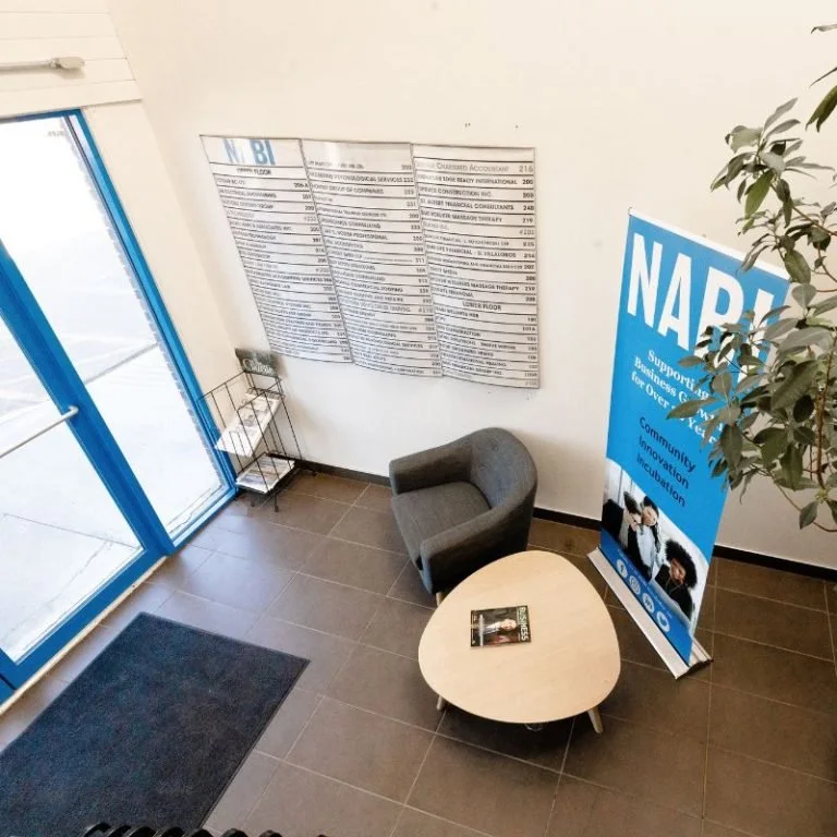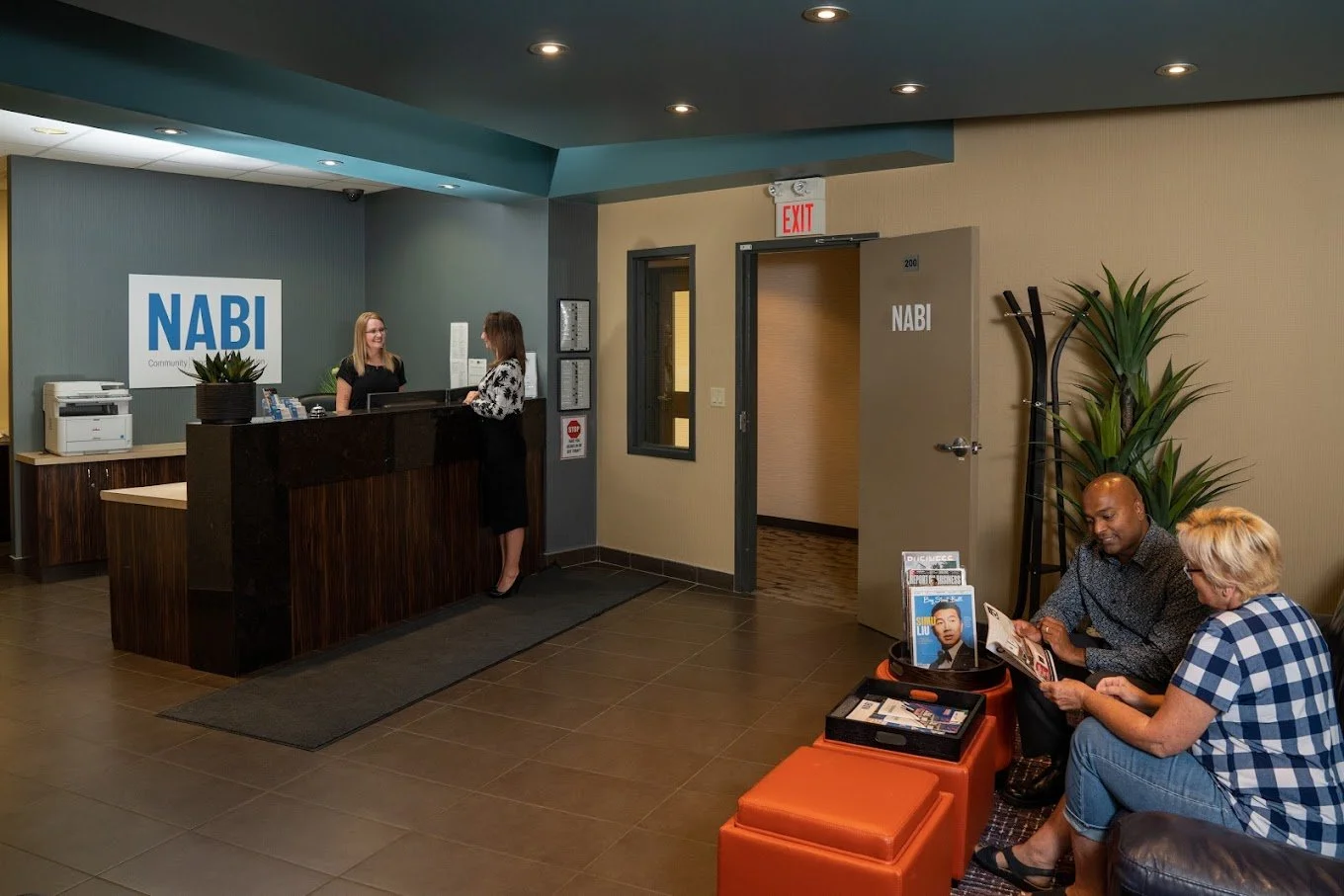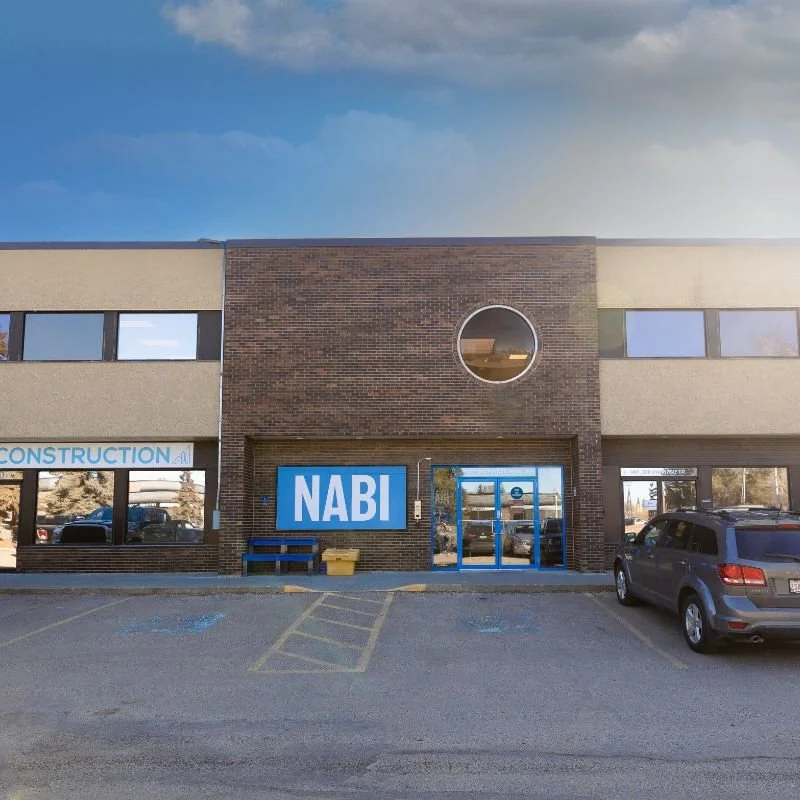 Entrance to the NABI building; please use the doors with the blue trim.
